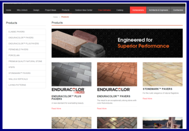 divisions: hardscapes, precast, masonry, tile, and hearth.